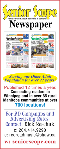 Seniors Health Articles, Seniors Resources Articles, Things to Do Winnipeg & Rural Lists, Crosswords, Word Searches, Senior Centres Listings, Retirement & Personal Care Living, Travel & Leisure, Classified ADs Section, The Pros Know Updates Housing Edition, Legacy Edition, Health & Welfare Edition, Special Cultural Events Listings, Historical Facts Stories and so much more to see and do in Senior Scope!